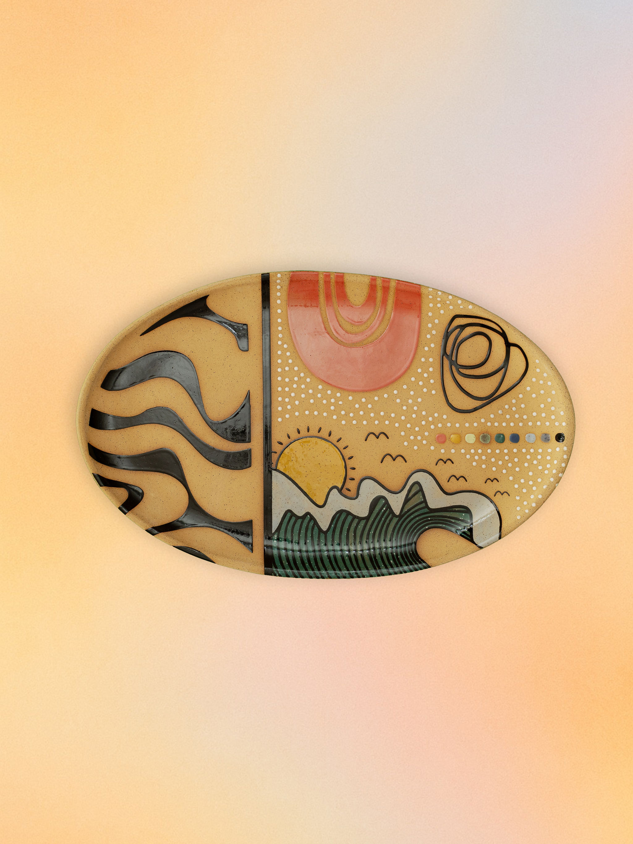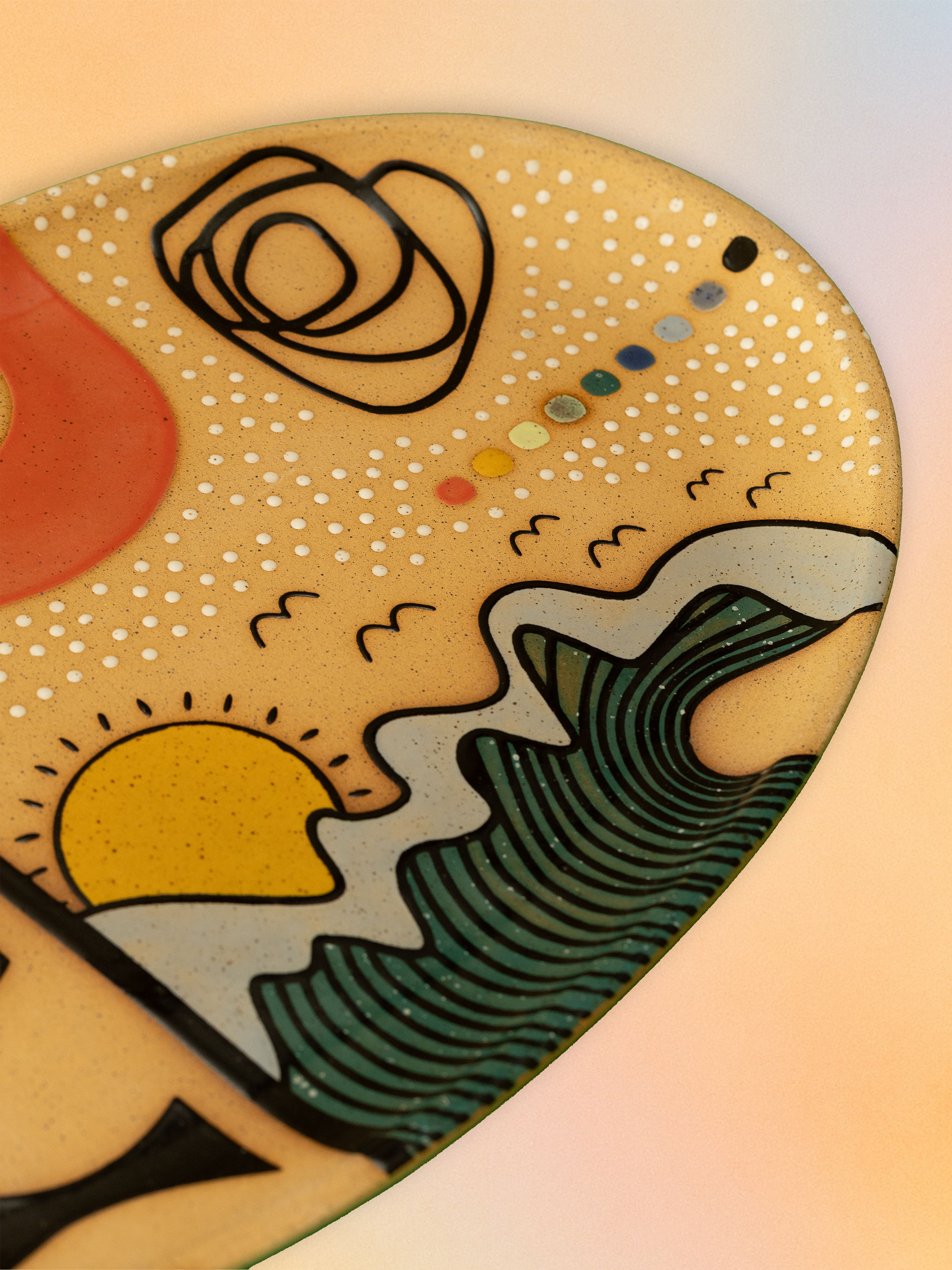 The Platter is a celebration piece, joyful, colorful, and built for gathering. Each one was hand-thrown and painted by acclaimed ceramicist Didem Mert, created exclusively for Magic Mind. Her work is bold and playful, instantly recognizable, and full of personality that brings energy to any table.